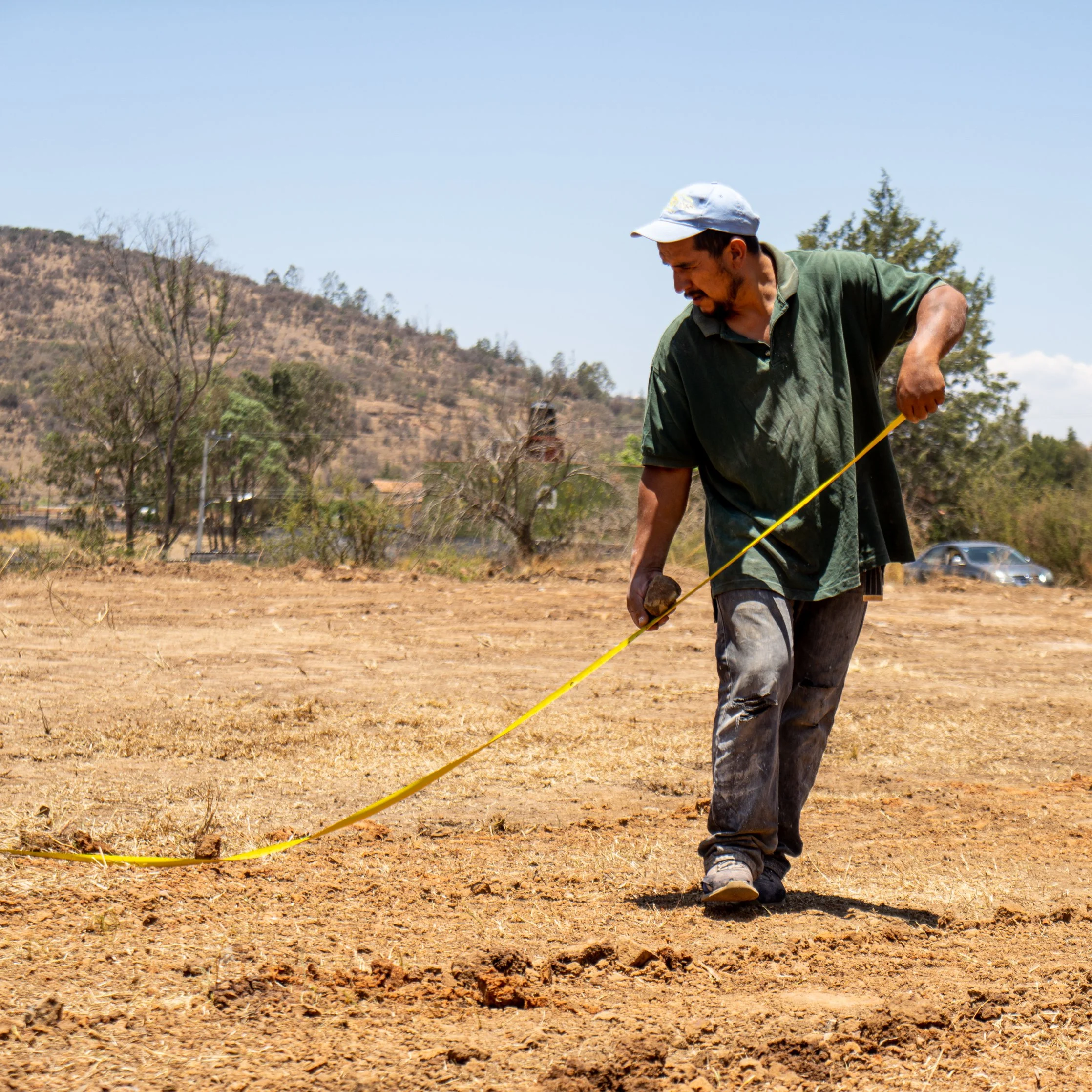 Miguel Angel Garcia prepares the ground for the community plaza in Río de Parras